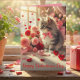 Celebrate love with this enchanting blank Valentine's Day greeting card featuring an adorable fluffy kitten surrounded by vibrant pink roses, floating hearts, and a sunlit window backdrop. The cute tabby cat, adorned with a pink bow, sits amidst a romantic scene of scattered red hearts and blooming flowers, evoking warmth and affection. This card is blank inside, allowing you to add your own heartfelt message for that special someone—perfect for partners, friends, or family.