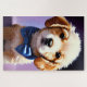 Adorable Fluffy Welpe w Niedlich Blue Bow Krawatte Puzzle