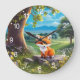 Adorable Fox sitzend unter Baum Große Wanduhr