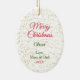 An der Vorderseite dieses Ornaments wurde ein bewundernswerter Hundewelpen erwischt, der seinen Weihnachtsbaum voll von Goodies gestohlen hat. Das Bild wird auf einem weißen Hintergrund mit goldenen Konfetti platziert. Die Rückseite des Ornaments hat den gleichen Hintergrund, mit Ihrem benutzerdefinierten Text in rot und grün in vier leicht zu ändernden Textfeldern. Lass es sagen, was du willst! Ideal für einen Sohn, eine Tochter oder ein Enkel, der Welpen Liebe.