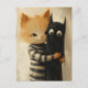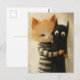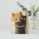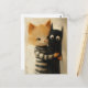 Adorable ginger cat and a black kitty ghost postkarte