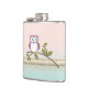 Modernes, mädchenhaftes und niedliches Design der Cartoon-Eule auf rosa und blauem Hintergrund mit Spitzen.
