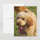 Diese niedliche goldendoodle Hund Postkarte bietet ein bezauberndes Foto eines glücklichen Golden Doodle Welpen. Fügen Sie Ihre eigene Nachricht hinzu, um dieses Design zu Ihrem eigenen zu machen! Fotografie erstellt von der preisgekrönten Fotografin Maria Jeffs.