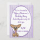 Adorable Kinder Geburtstagsfeier Einladung in einem Lavendelstreifen, mit einem ovalen weißen Textbereich und einem niedlichen Cartoon chihuahua schmücken die Vorderseite. Passen Sie alle Textfelder mit Textstil, Farbe und Größe Ihren Bedürfnissen an.