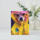 Adorable Hündin in einem gelben Regenmantel Postkarte