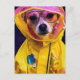 Alle Rechte vorbehalten © Angelandspot ein bezaubernder Hund mit Brille und gelbem Regenmantel