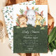 Niedliche Aquarelldschungelsafari Babydusche mit einer hübschen Giraffe, Löwen & Elefanten mit DschungelBlätter auf dunkelgrünem Hintergrund. Ideal für eine Mädchendusche, eine Babydusche oder eine geschlechtsneutrale Babydusche. Besuchen Sie unseren Shop, um dieses Design mit einzelnen Tieren zu sehen.