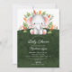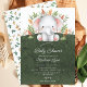 Niedliches Aquarelldschungelsafari Babydusche-Design mit einem hübschen Elefanten mit Dschungel-Blätter auf dunkelgrünem Hintergrund. Ideal für eine Mädchendusche, eine Babydusche oder eine geschlechtsneutrale Babydusche. Besuchen Sie unseren Shop, um dieses Design mit einzelnen Tieren zu sehen.