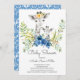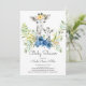 Niedliche Dschungelsafari Babydusche mit niedlicher Giraffe in Schwarz und Weiß mit hübschen Aquarellblumen. Dreh unsere Einladung nach hinten, um einen koordinierenden blauen und weißen Damast für eine besondere Touch zu sehen. Besuchen Sie unseren Shop, um diese süße Einladung für Mädchen Babydusche oder geschlechtsneutrale Dusche zu sehen.