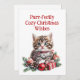 Freuen Sie sich auf die wunderschöne Weihnachtskarte mit einem niedlichen Kätzchen, das zwischen festlichen Dekorationen wie Heiligenbäumen, Efeu, Nadelkronen und hellen Bauern eingebettet ist. Die Vorderseite der Karte begrüßt Sie mit der herzlichen Botschaft "Purr-cosy Christmas wünscht," während das Gegenteil ein nachdenkliches Gefühl von Wärme und Freude für die Saison liefert. Egal ob für Familie, Freunde oder Kollegen, diese Karte bringt mit ihrem gemütlichen, festlichen Design und dem süßen Kätzchen ein Lächeln. Ideal für alle, die Katzen und die Magie der Weihnachtszeit Lieben. Der gesamte Text auf dieser Karte ist personalisierbar.