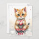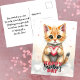 Diese individuell gestaltbare Valentinstag-Postkarte zeigt eine anmutigende Abbildung eines niedlichen, flauschigen Kätzchens, das ein Herz trägt. Das Kätzchen ist in einer sanften, warmen Farbpalette in Orange-, Weiß- und Brauntönen gehalten und von kleinen, schwebenden rosa Herzen umgeben. Der Text "HAPPY Valentine's DAY" wird am Ende der Postkarte in einem spielerischen, kühnen Schriftart mit "HAPPY" ans d "DAY" in rot und "Valentinin's" in schwarz kursiv dargestellt. Der Text auf der Vorderseite und auf der Rückseite ist vollständig anpassbar, sodass Sie Ihre eigene persönliche Nachricht oder Gruß hinzufügen können, um es einzigartig und speziell für Ihre Lieben zu machen. Dieses charmante und herzliche Design ist perfekt, um Ihre Zuneigung am Valentinstag auszudrücken.