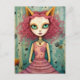 Adorable Lady mit Cat Oars Mixed Media Collage Postkarte