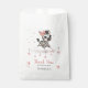 Cute girl baby shower favor bag featuring adorable little female zebra wearing a cute pink bow with some love hearts