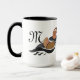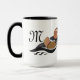 Schwimmen mit Mandarinenente. Die Cartoon-Abbildung ist von der Seite mit einer Wasserwelle.