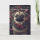 Diese niedliche Weihnachtskarte ist mit einem bezaubernden Mops-Hund mit einem Kranz um den Hals und Weihnachtsbaubeln im Hintergrund ausgestattet. Sie können sowohl den Gruß auf der Vorderseite als auch die Nachricht in der Karte nach Ihren Wünschen anpassen.