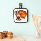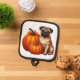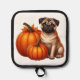 Adorable Mops neben Pumpkins und Blätter sitzen Topflappen