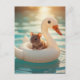 Adorable Mouse Floating on a Swan Float Postkarte