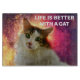 Porträt einer niedlichen und bezaubernden Kalico Katze mit grünen Augen, rosa Nase und mehrfarbigen, flauschigen Fellen. Das schöne Haustier schaut direkt in die Augen. Ein digitales Bild aus einem Foto. Elegantes und lustiges elegantes Schneidebrett für Sie. Personalisierbar. Sie können das Bild ändern. Sie können das Bild Ihrer eigenen Katze anstelle des Vorlagenbilds verwenden, wenn Sie möchten. Sie können auch den Vorlagentext LIFE IST BESSER MIT EINER KATZE ändern oder löschen. Sie können dieses Design auf eine Vielzahl anderer Produkte Ihrer Wahl übertragen. Bitte verwenden Sie die Schaltfläche "Design bearbeiten" bzw. "Persönlich anpassen" (je nach Fall), um das Bild an die Form des jeweiligen Produkts anzupassen. Sie werden zum Designer-Tool weitergeleitet. Verwenden Sie die Option "Fit/Fill" (rechtes Menü im Designer-Tool). Sie können das Bild skalieren, drehen, auf der Produktvorlage gedreht und selbst einen Text hinzufügen. Sie können auch den Typ, die Größe, die Farbe und die Position des Schriftartes ändern. Sei einfach kreativ, kaufe einen, habe Spaß und sei glücklich!
