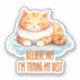 Bringen Sie ein Lächeln zu Ihrem Tag mit unserem 'Glaube mir! Ich probiere meinen Best-Aufkleber mit einer unwiderstehlich niedlichen orangefarbenen Tabbierkatze aus. Dieses herzliche und verwandte Kunstwerk ist perfekt für Katzenliebhaber, die den Kampf um ihr Bestes kennen. Ein charmantes Geschenk für jeden Anlass oder eine lustige Leckerei für sich!