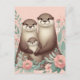 Adorable Otter Boho Pink Rose Mama Vater und Baby Postkarte