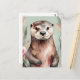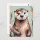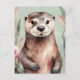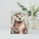 Alle Rechte vorbehalten © Angelandspot Ein bezaubernder Otter mit niedlicher staubiger Rose und schlauer grüner Blume im Aquarellstil