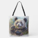 Malerei von niedlichen jungen Panda fressen Grünbambus