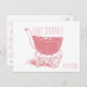 Adorable Pink Baby Girl Carriage Retro Baby Shower 5.6" x 4.25" (Landschaft) Postkarte.