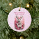 Fügen Sie Ihrem Weihnachtsbaum eine Touch personalisierten Charmes mit diesem Adorable Rentier Customizable Ornament hinzu! Die sanften Farbtöne Rosa und Weiß, gepaart mit einem zarten, rosafarbenen, funkelnden Hintergrund, schaffen eine kindische Atmosphäre. Auf der einen Seite befindet sich ein hübsches Rentierdesign, auf der anderen befindet sich das Foto des geliebten Menschen. Außerdem haben beide Seiten anpassbaren Text. Es ist nicht nur ein Ornament, es ist ein gepflegter Sake voller festlicher Erinnerungen. Klicken Sie auf die Schaltfläche Bearbeiten, um dieses Ornament anzupassen.