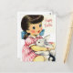 Adorable Retro Happy OsterGirl und Bunny Postkarte