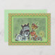 ADORABLE ROBOT BULLDOG & FELINE FRIEND Funny Blank Postkarte