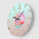 Adorable rosa Flamingos Pool Floß Große Wanduhr