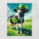 Eine bezaubernde Aquarellkuh St. Patrick's Day schwarz-weiß mit einem grünen Hut