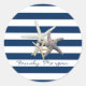 Adorable Starfish, Navy Blue Stripes Personalisier Runder Aufkleber