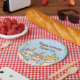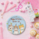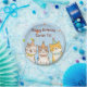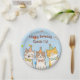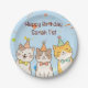 Celebrate your little one's special day with this charming, customizable paper plate! Featuring three cute cartoon kittens wearing colorful party hats and festive bow ties, this design is perfect for a cat-themed birthday party. The soft blue background is accented with bright confetti, making it a delightful addition to any first birthday celebration. Easily personalize the text with your child's name and age for a truly unique party experience.