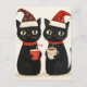 Ein hübsches Paar schwarzer Katzen mit Weihnachtsmannmützen, die heiße Schokolade halten, erschuf Kunst