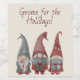 Dieses reizvolle Urlaubsdesign besticht durch eine Gruppe von zauberhaften Weihnachtszwergen mit großen Nasen und langen, spitzen Hüten, die jeweils ein festliches Ding wie ein Bonbons oder ein Geschenk halten. Mit einer spielerischen Botschaft, "Gnome für die Feiertage!" bringt dieses Design eine Touch von Laune und Wärme in Ihre saisonalen Grüße. Die gedämpften Rot-, Grün- und Grautöne und die schlichten, abgerundeten Formen verleihen diesen Gnomen einen niedlichen Reiz und vermitteln Freunden und Familie einen angenehmen Aufenthalt.