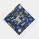 Herrliches Bild auf Papierservietten im skandinavischen Stil mit Hirsch und anderen Weihnachtselementen. Lebhafte Farben in königsblau, marineblau, grau und gelb.