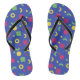Zeigen Sie Ihren Synthwave/Vaporwave-Stil mit diesen Flip-Flops, die mit geometrischen Formen auf blauem Hintergrund im Memphis-Stil entworfen wurden.