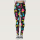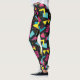 Originelles Design von Yoga-Leggings im Synthwave/Vaporwave-Stil mit Formen und schwarzem Hintergrund im Memphis-Stil.