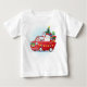 Charmantes Weihnachtsbild auf einem T - Shirt Aquarellmalerei des Weihnachtsmannes und seiner Freunde in einem Auto.