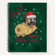Charmantes Bild auf einem individuellen Notizbuch eines Cartoon-Mops mit einer Weihnachtsmannmütze und Sprichwort, "Happy Paw-lidays". Klicken Sie auf "Personalisieren", um Ihr eigenes Monogramm oder Ihren eigenen Namen einzugeben.