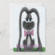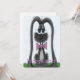 Diese bezaubernde Ostergrüßkarte zeigt Jack, das liebliche graue Hasen, das in seiner Lieblings-Rosa-Bogen-Krawatte gekleidet ist. Personalisieren Sie diese alberne Grußkarte, indem Sie Ihren Text hinzufügen oder löschen, um ihn leer verlassen. Es basiert auf einem Originalwerk von © One Künstlerisch Momma.