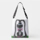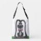 Diese bezaubernde Crossbody-Tasche zeigt Jack, das liebliche graue Hasen, das in seiner Lieblings-Rosa-Bogen-Krawatte gekleidet ist. Personalisieren Sie diese sonnige Ganzkörpertasche, indem Sie Ihren Text hinzufügen oder löschen, um ihn leer verlassen. Es basiert auf einem Originalwerk von © One Künstlerisch Momma.