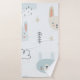 Adorable Tiere pastellfarbene Muster Kinder weißes blaues Badetuch.