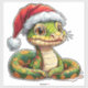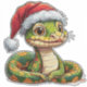 Eine künstlerisch gezeichnet Schlange mit einem detaillierten Körper, die eine Weihnachtsmannmütze trägt und eine faszinierende Kombination aus Charme, Fantasie und magischer Illustration ausstrahlt.