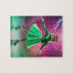 Katzeneis-Skaten in einem grünen Kleid mit rosa Details
