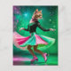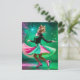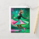 Adortable Ice Skaten Cat in Rosa und Grün Postkarte