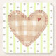 Hübsche Grafik und Farbanpassung nach Herzformen, Streifen und Tartanmuster. Das Kunstwerk zeigt in rustikal braunem Herz auf pastellfarbenen Streifen.