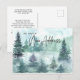 Adressenwechsel/bewegende Postkarte mit einer schönen schneebedeckten Bergszene mit Aquarellkiefern. Lass allen Freunden und Verwandten, dass du umgezogen bist. Im Text vorne steht: "Wir haben eine neue Adresse." Der Rücken beinhaltet Ihre neue Adresse und Ihre persönliche Nachricht.