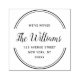 ein elegantes Skriptdesign mit individueller Text- und geometrischer Kreisrahmendarstellung. Name und Adresse können bearbeitet werden.